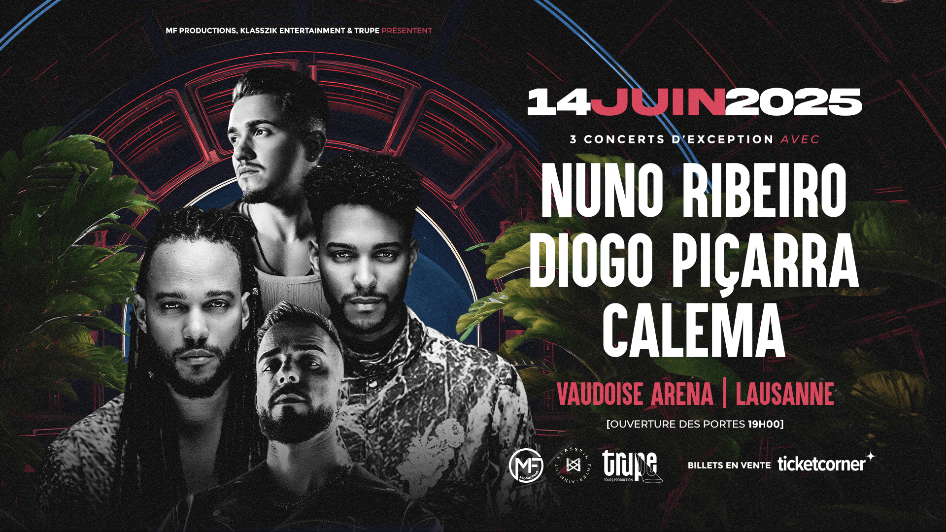 Nuno Ribeiro, Diogo Piçarra et Calema feront danser la Vaudoise aréna le 14 juin 2025 !