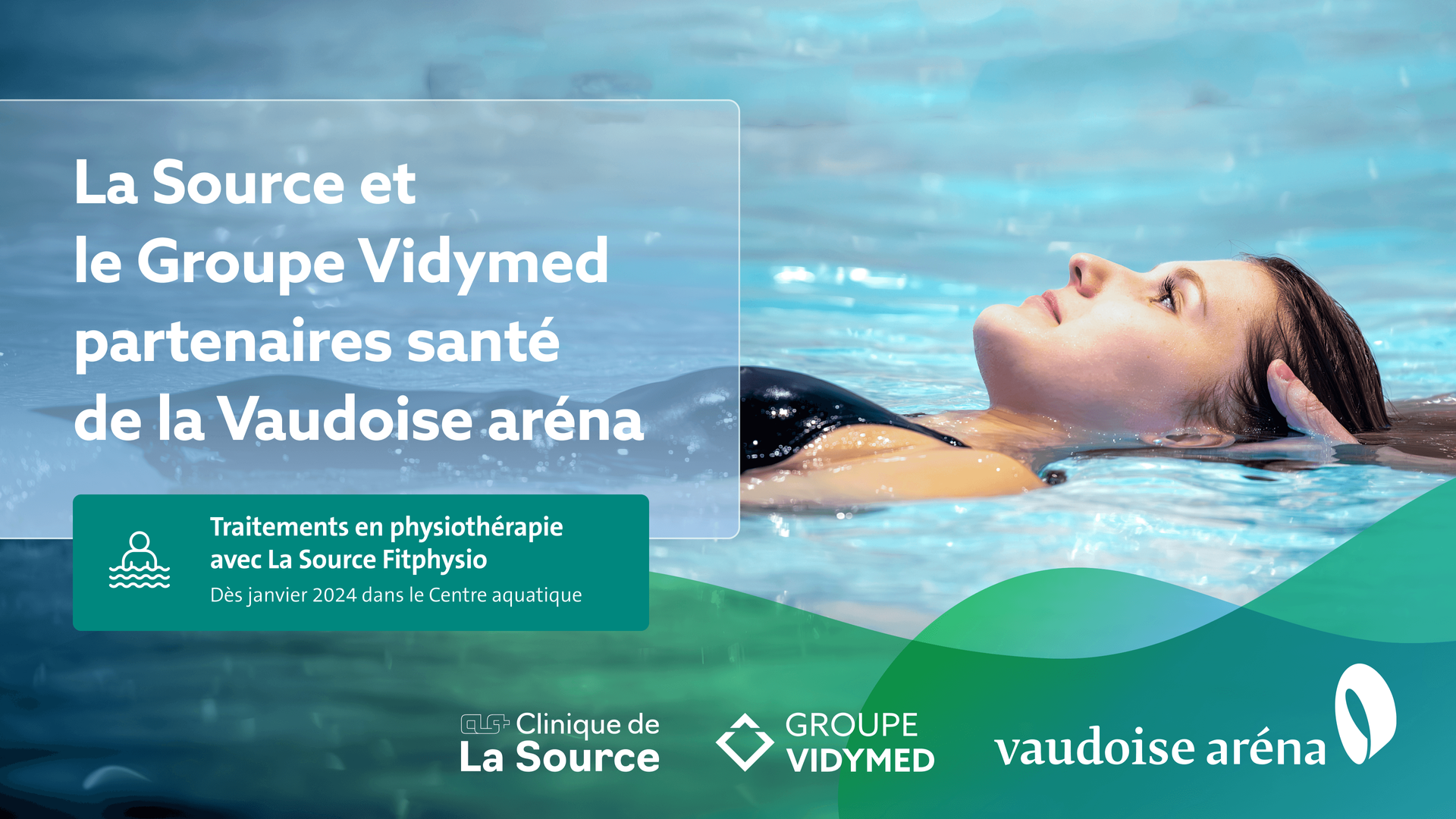 Profitez dès à présent de traitements en physiothérapie dans le Centre aquatique de la Vaudoise aréna grâce à nos partenaires santé la Clinique de La Source et le Groupe Vidymed !